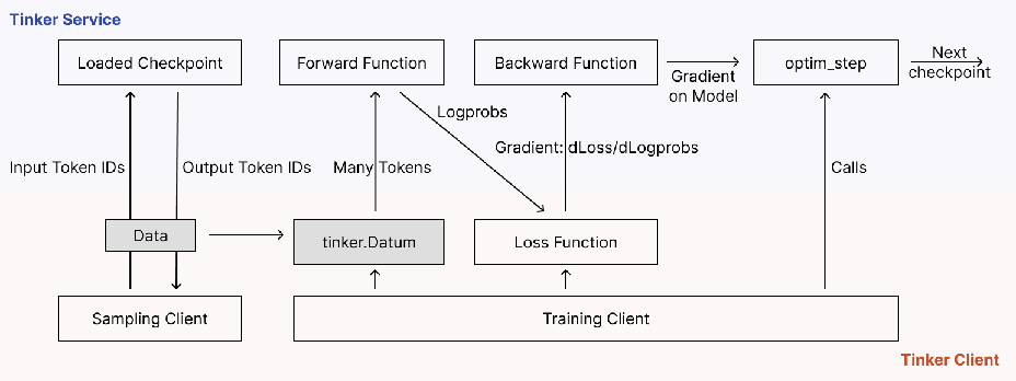 Tinker is structured into two main components: (1) Tinker (core) — the low-level framework for model training and sampling. (2) Tinker Cookbook — a set of ready-to-use recipes and examples. For newcomers, I highly recommend reading this official article, which clearly explains Tinker’s foundational ideas.