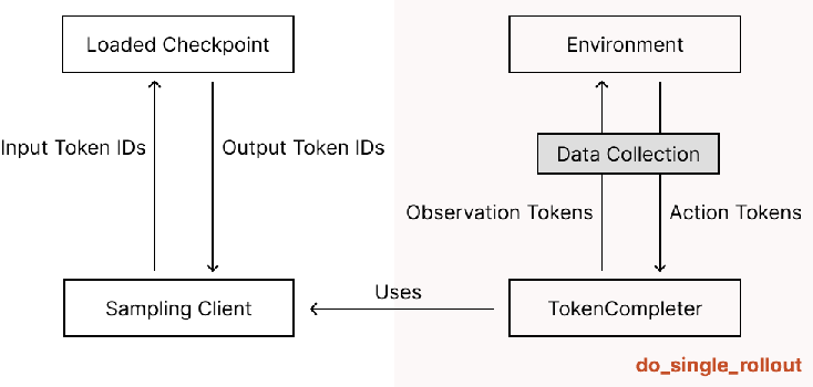 In Tinker’s examples, there’s no dedicated tracer or telemetry system (except for logging training progress). To collect the token IDs required for training, they implement rollouts as follows: