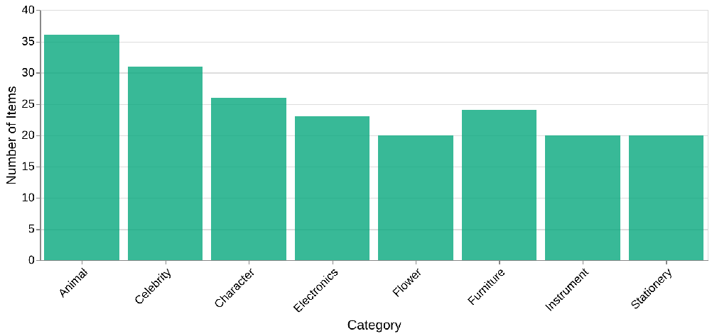 By category, animals, furniture, and instruments were relatively easy; celebrities, fictional characters, and flowers were much more challenging.